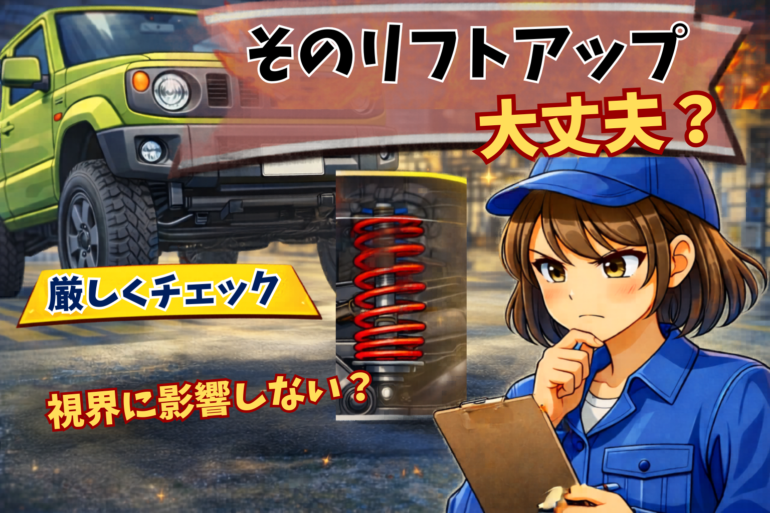 【保安基準解説】リフトアップしたジムニーは車検に通る?