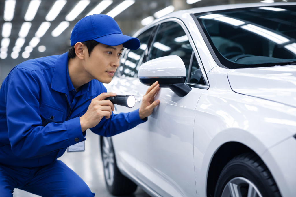 外観検査とは、車を目視(目で見て確認)でチェックする工程です。