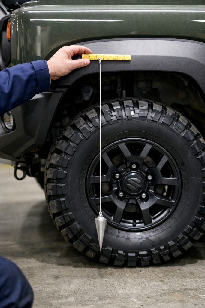 ジムニーはリフトアップやオーバーフェンダーレス仕様、ワイトレ・スペーサー装着などのカスタム事例が多い車種だからこそ、「少しの突出」が検査で指摘されるケースも少なくありません。特にホイールナットやタイヤのサイドウォールが基準範囲内で突出していないかは、ユーザー車検・継続検査のどちらにおいても事前確認しておくべきポイントです。