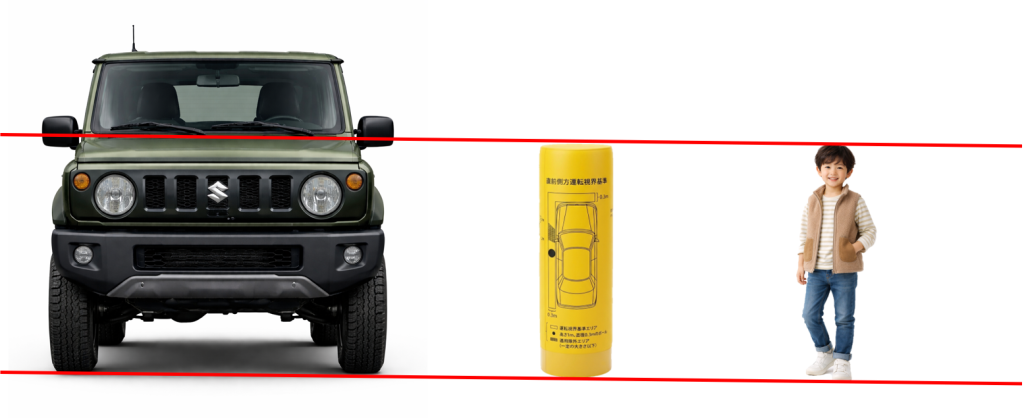 運転者が車両の前方および側方の歩行者等(身長1メートルの子どもを想定)を