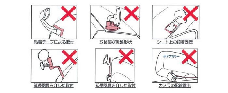 簡単に取外せたり取付けが不確実な補助ミラーや、カメラの配線が車体の表面に露出していてもアウト