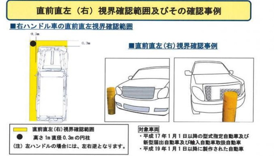 直前及び側方視界、直々 車検対策