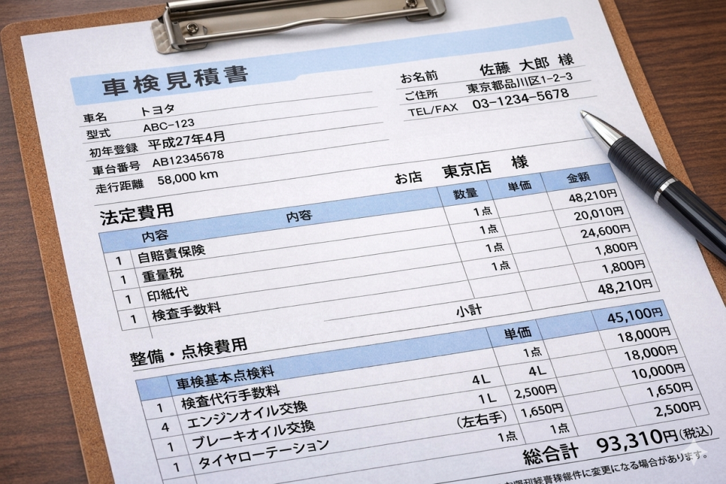 - 法定費用(重量税・自賠責・印紙代)※どこでも同じ